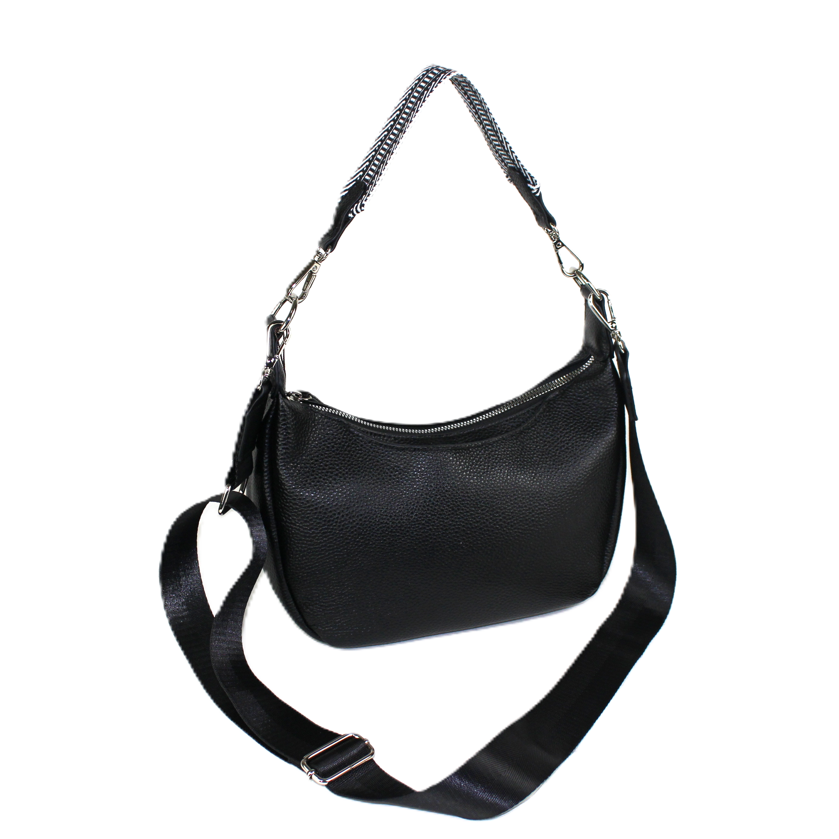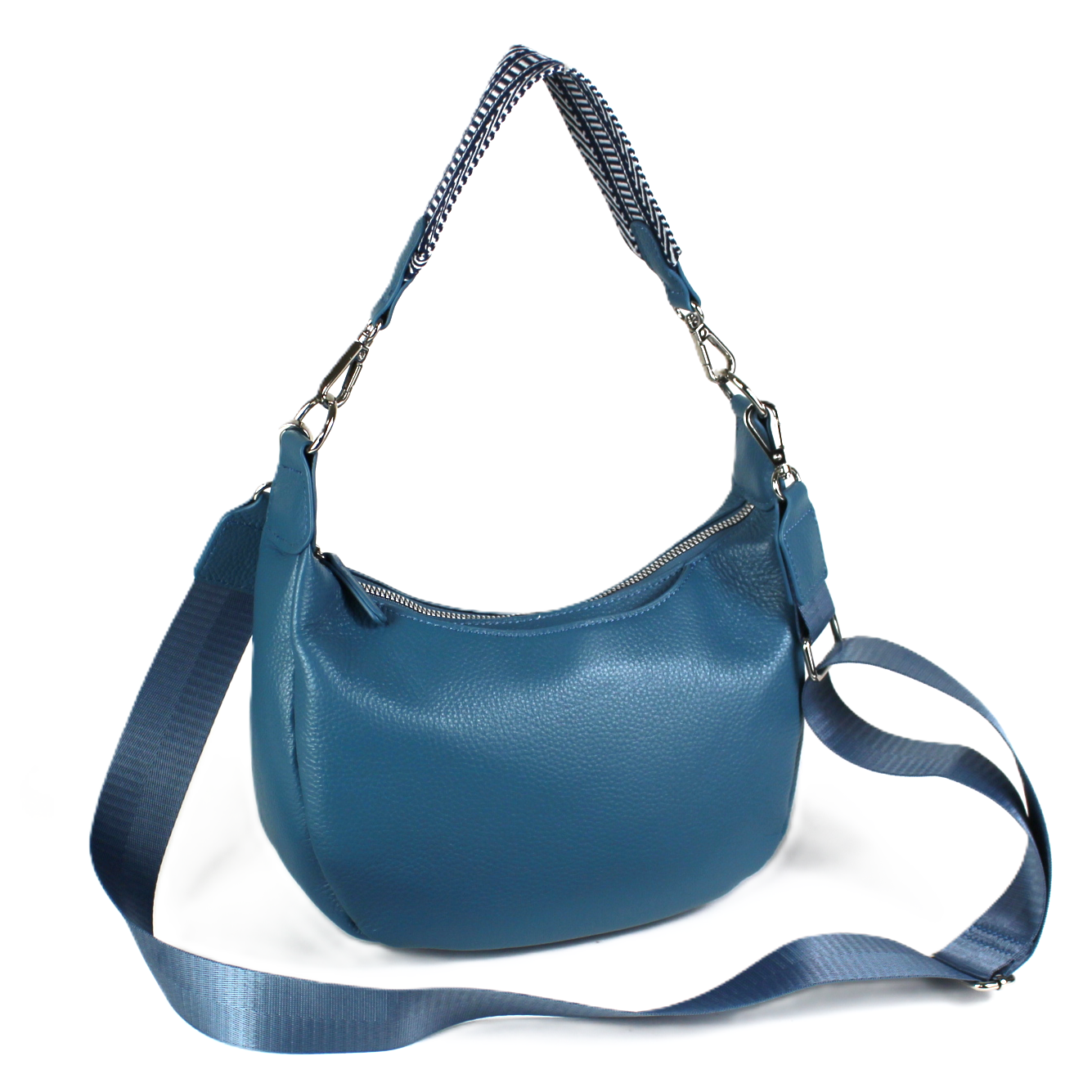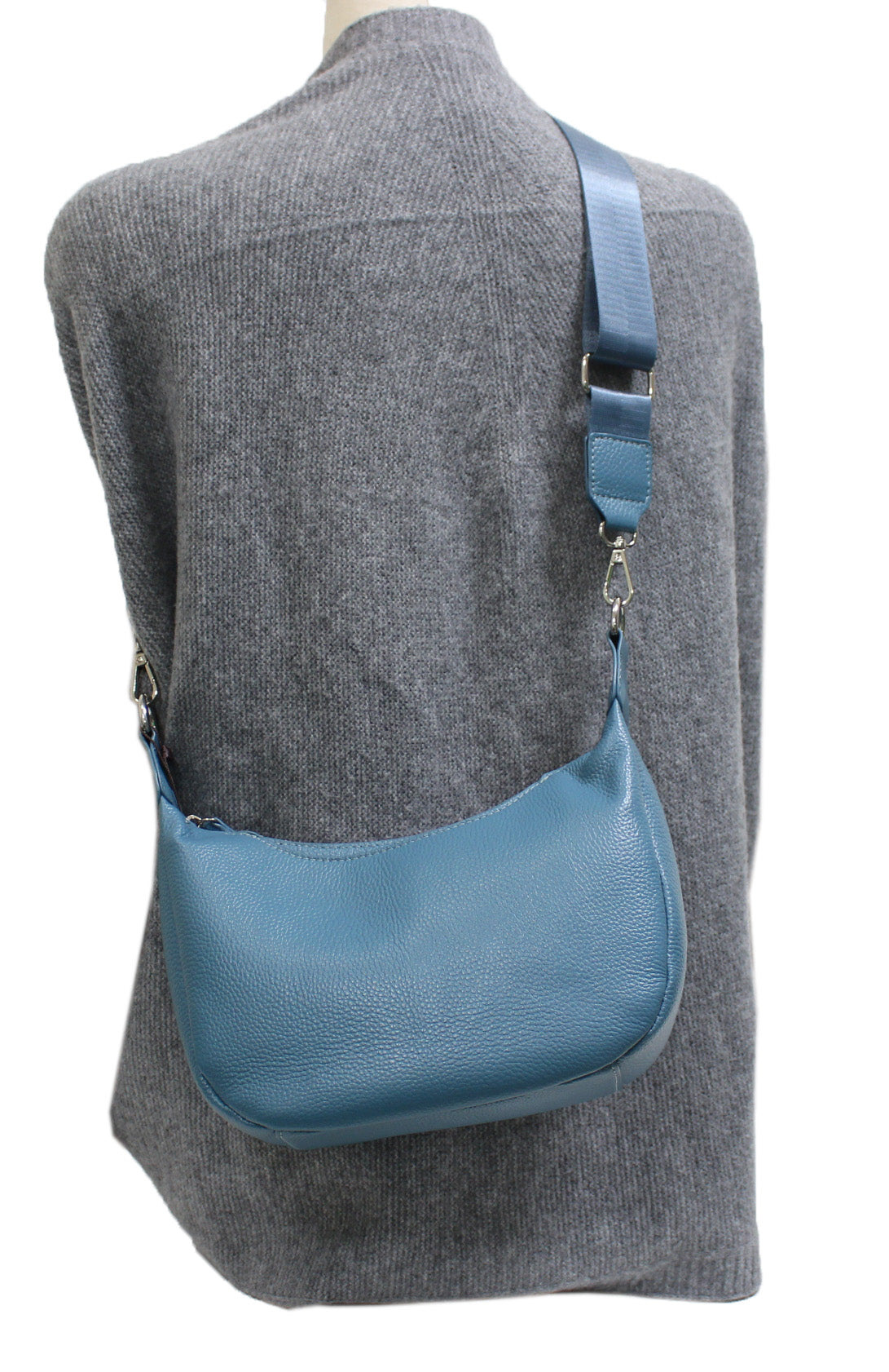 シュリンク牛本革の柔らかさを生かし、熟練の職人が一本一本丁寧に仕上げた三日月型ショルダーバッグです。