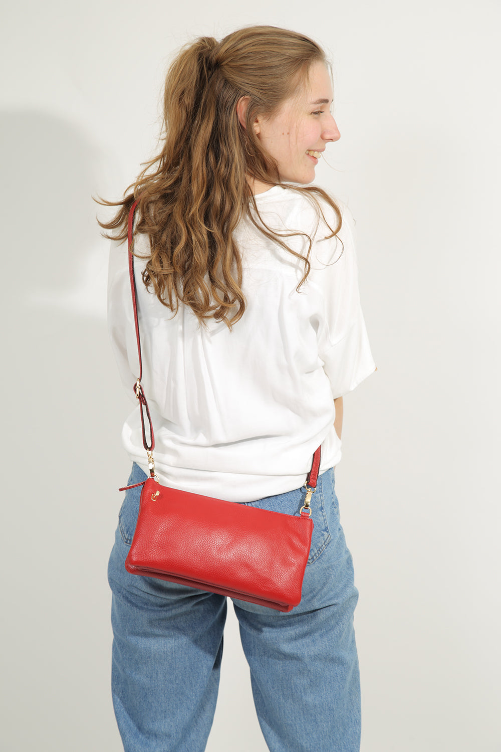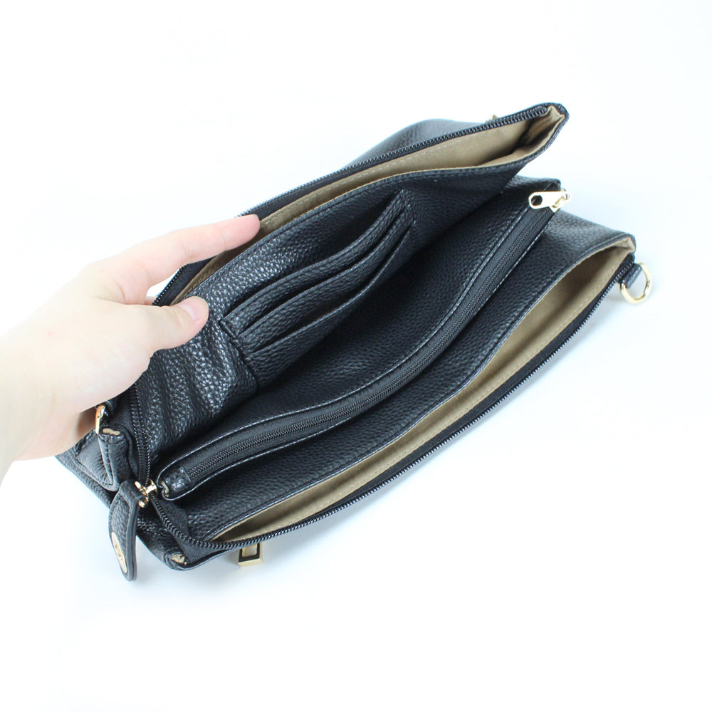 3つのポケットが合わさった構造により、クラッチ、ショルダー、ウォレットバッグとして