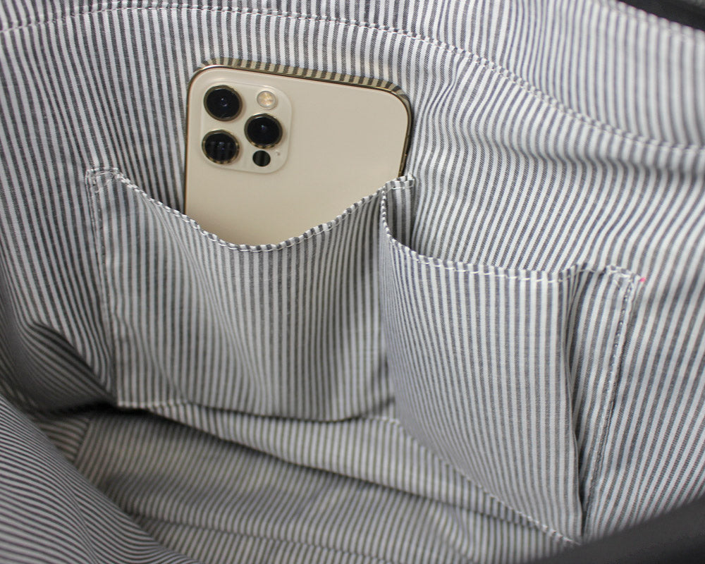 裏地は、ストライプ柄を使用しています。