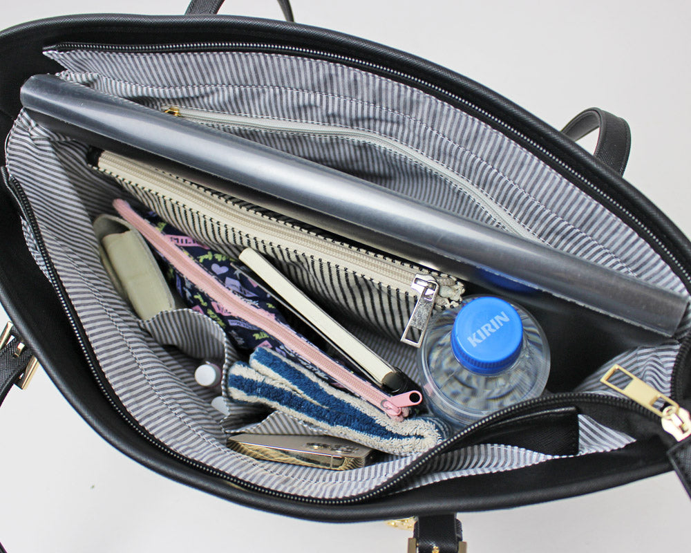 マチが広く、A4サイズに対応しているので、ビジネスにも通学バッグとしてもお使いいただけます。