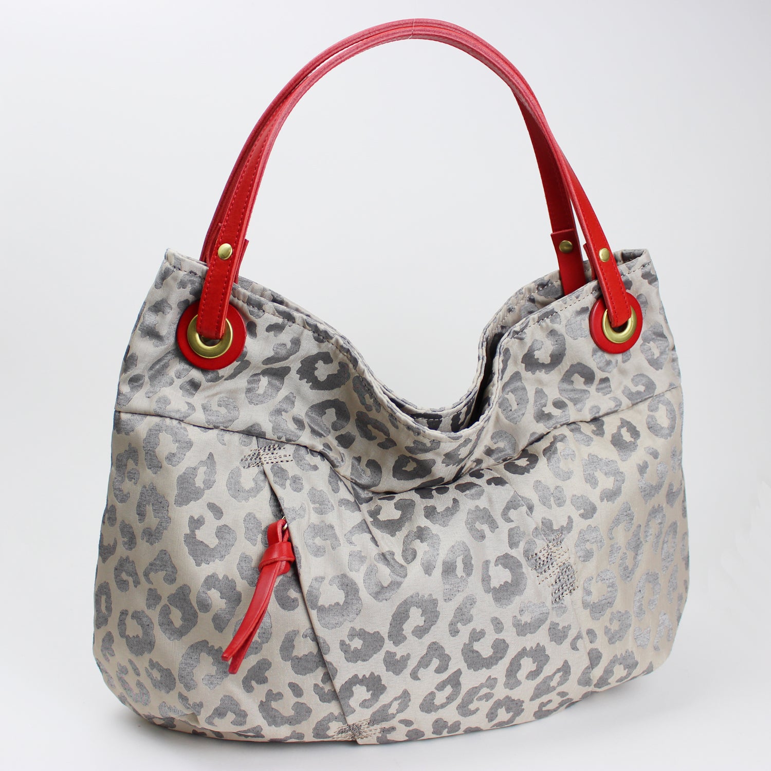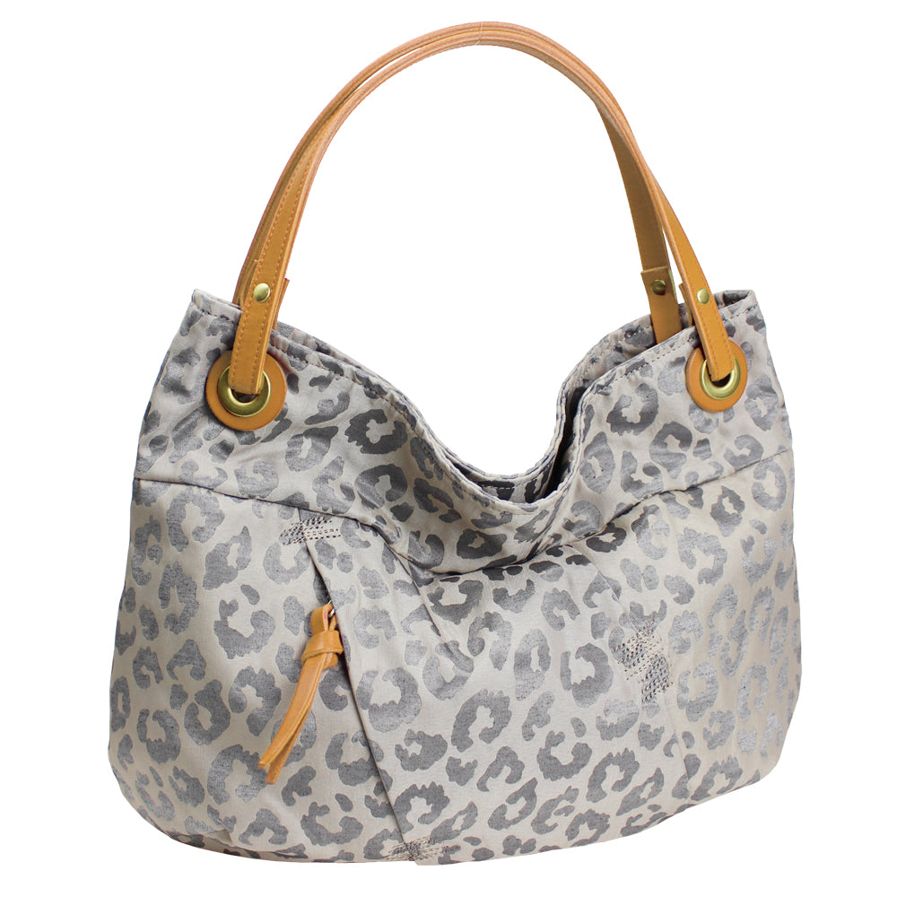 光沢のあるジャガードなどの柄物を使用したハンドバッグです。