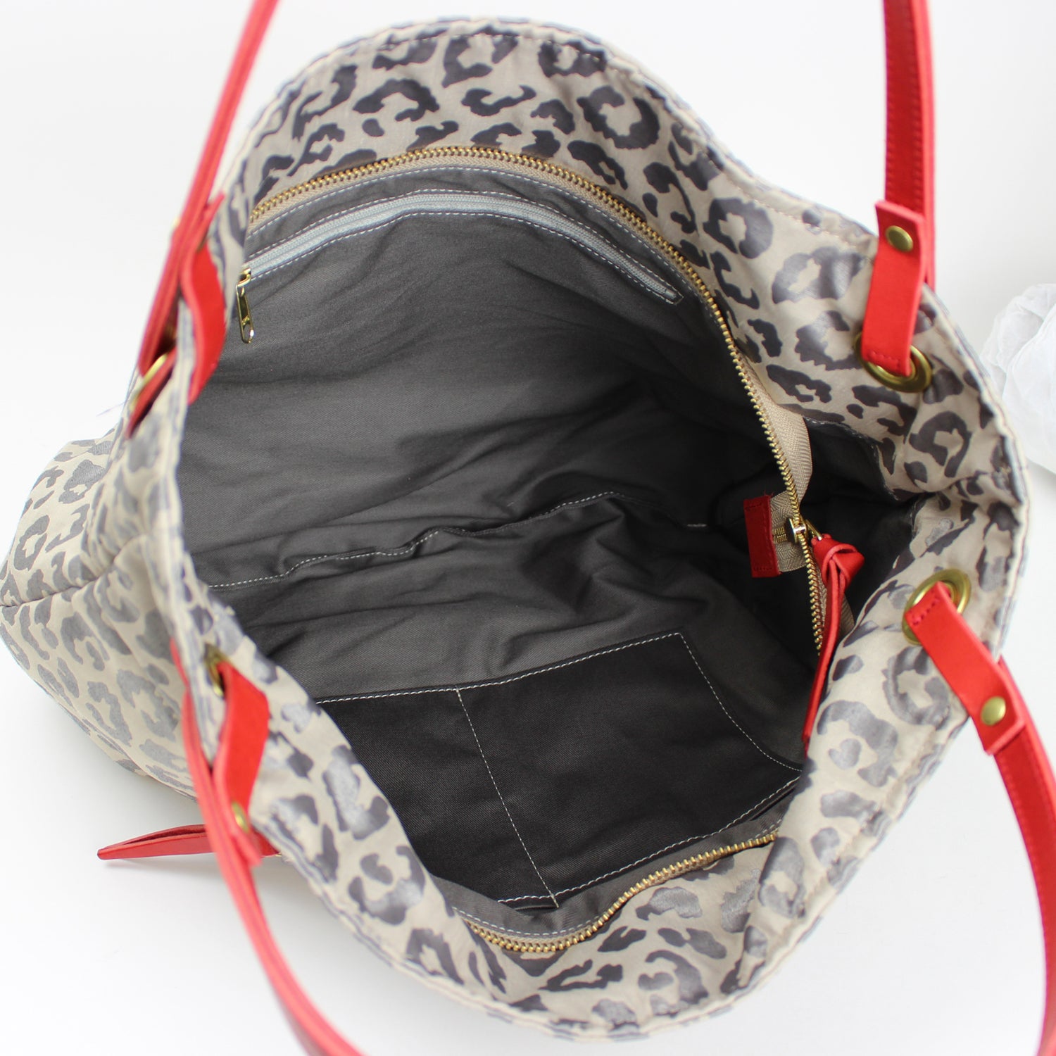 ベージュ(ヒョウ柄)×レッド